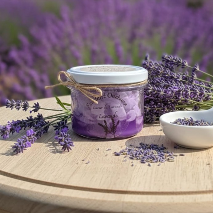 Je travaille la cire de soja associée à l’huile de coco bio pour créer une texture particulièrement douce, facile à prélever à la cuillère. Il suffit de déposer une petite quantité dans un brûle-parfum pour libérer une fragrance chaleureuse, idéale pour les instants cocooning. La cire fond lentement, diffusant progressivement les arômes dans la pièce sans émanation toxique. Chaque fondant est fabriqué artisanalement avec le plus grand soin.