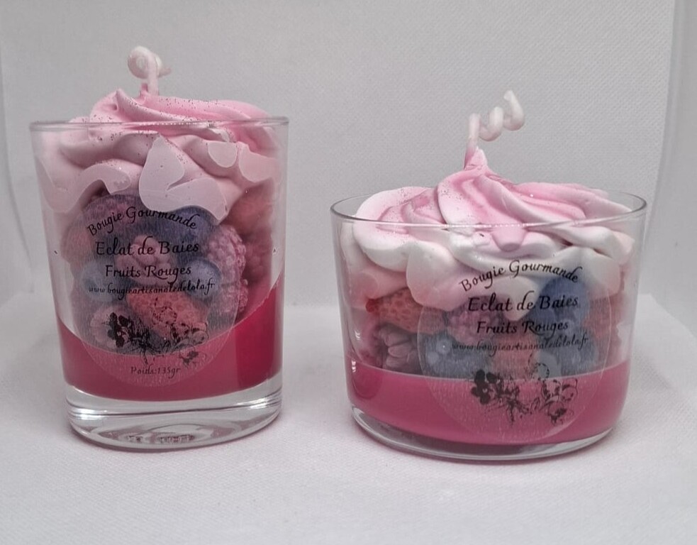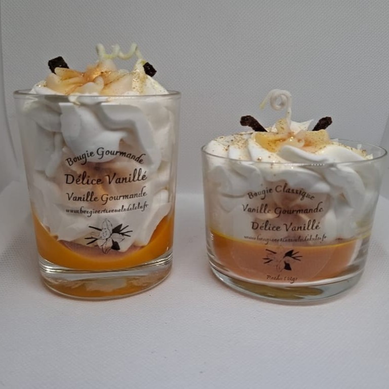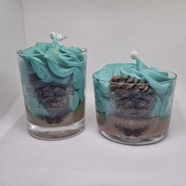 Certaines bougies se font plus gourmandes, d’autres plus classiques, selon l’inspiration du moment ou les envies spécifiques de mes clients. Je propose également des bougies personnalisées pour vos évènements : mariages, baptêmes, anniversaires ou simples attentions. Chaque pièce est façonnée avec soin, dans une démarche artisanale assumée, jusqu’aux moindres détails — même la cire en bille qui compose mes bases est choisie avec rigueur pour sa qualité.